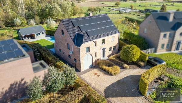Recente (‘16) karaktervolle high-end villa in landelijke stijl met 5 slaapkamers, verwarmd zwembad en grote zolderverdieping, gelegen op een perceel van 9a33ca met goede verbinding.